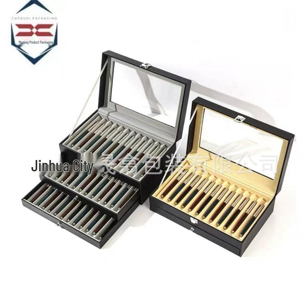 Кожаный ящик Shengxi для хранения и демонстрации перьевых ручек со световым люком