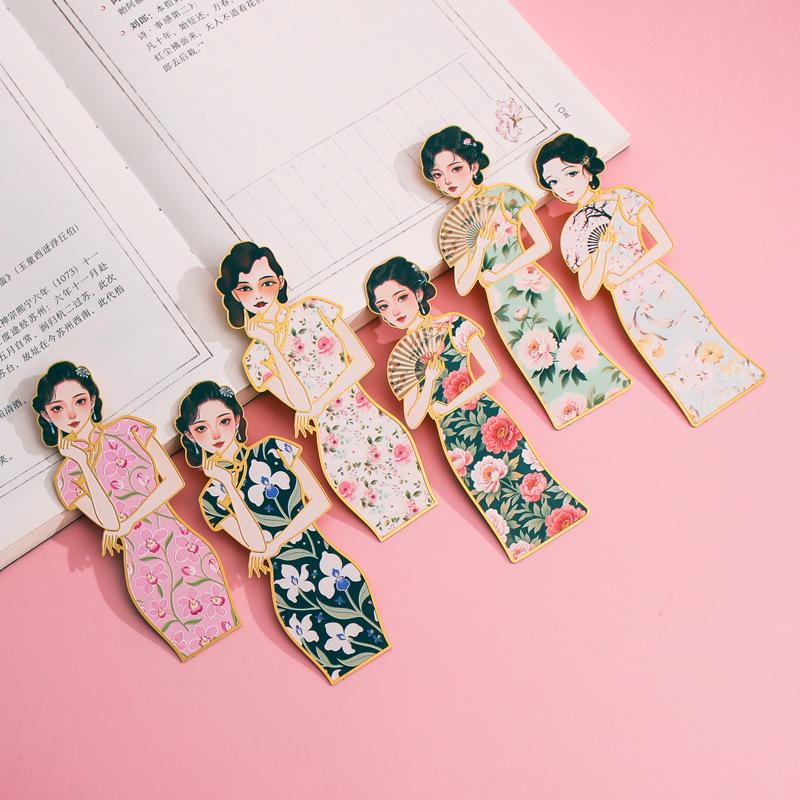 Qipao Series Retro Brass Cutout Bookmarks - Creative Ancient Style Design