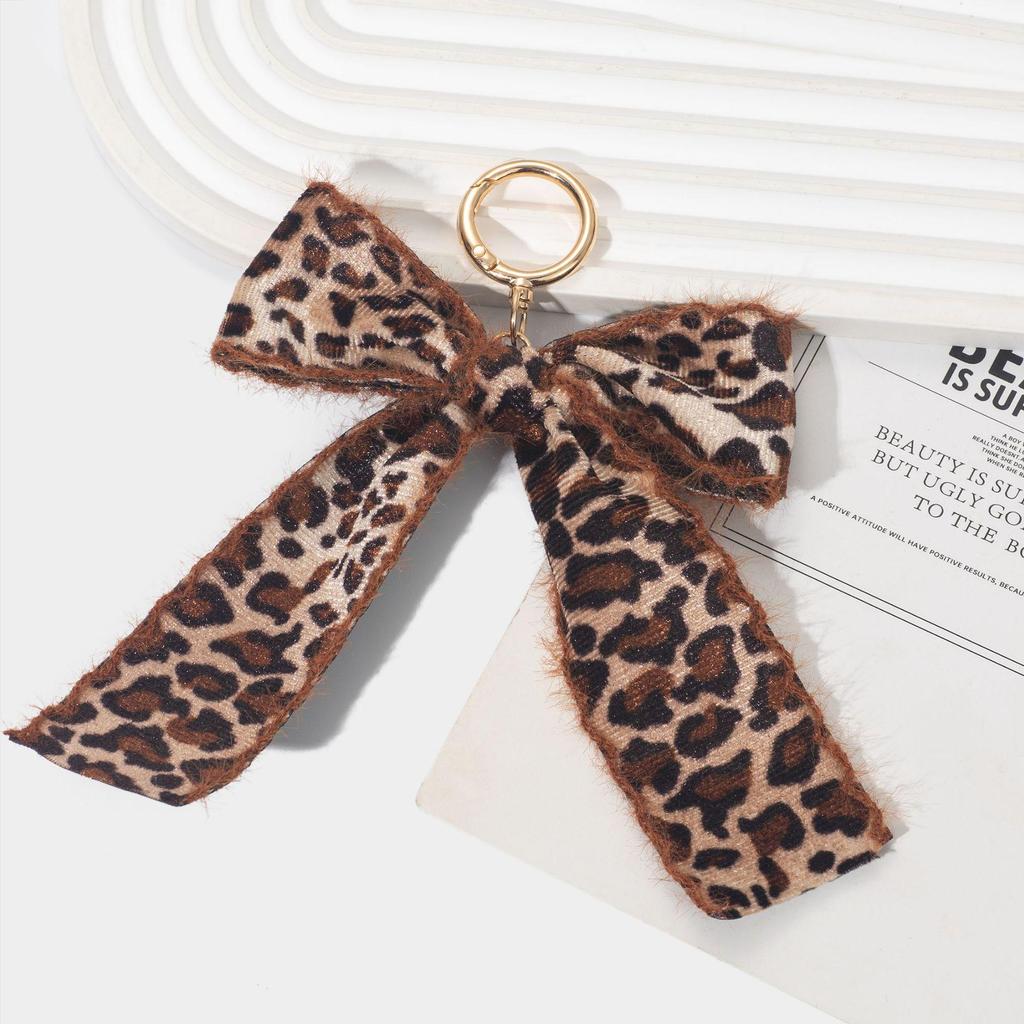 Ключница с брелоком в корейском стиле с леопардовым принтом и бантом – Креативный тканевый ленточный кулон для осени/зимы