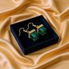 Зеленые Кристаллические Серьги-Гвоздики с Подвесками в Форме Кубиков Перидота