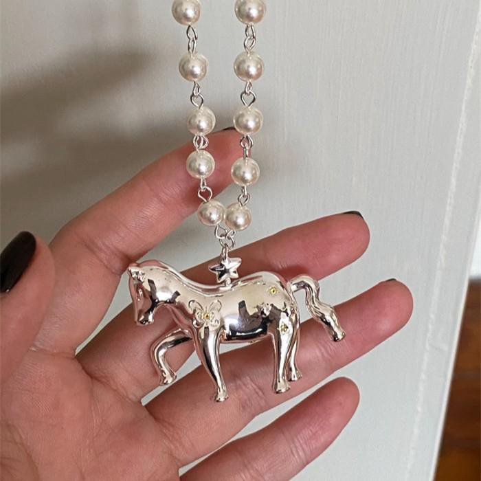 Жемчужное ожерелье-пони со знаком зодиака - Роскошная, универсальная многослойная цепочка для свитера для женщин