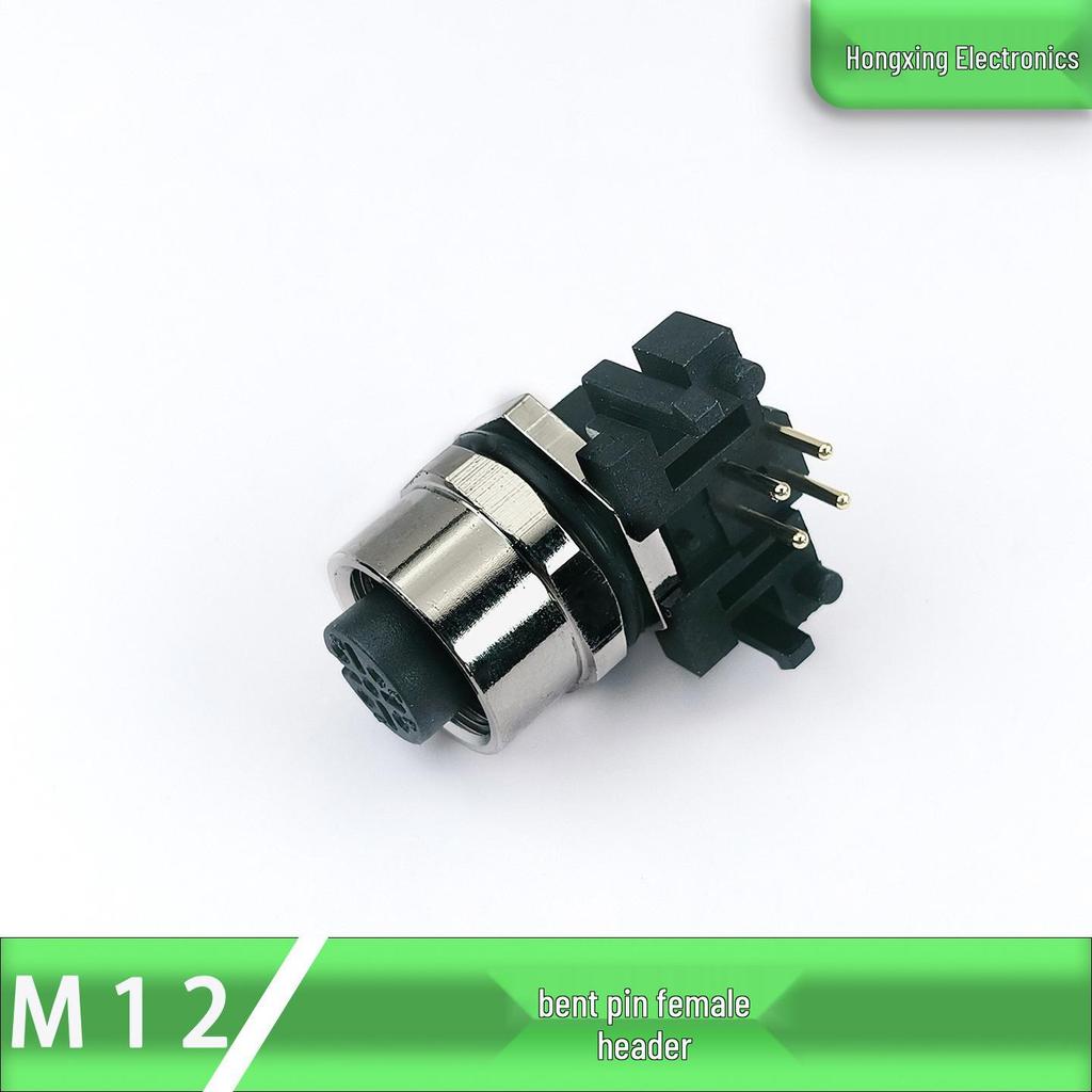 M12 Aviation Waterproof Gold-Plated Bent Pin PCB Solder Connector: Male/Female Socket, 2/3/4/5/8 Pin.