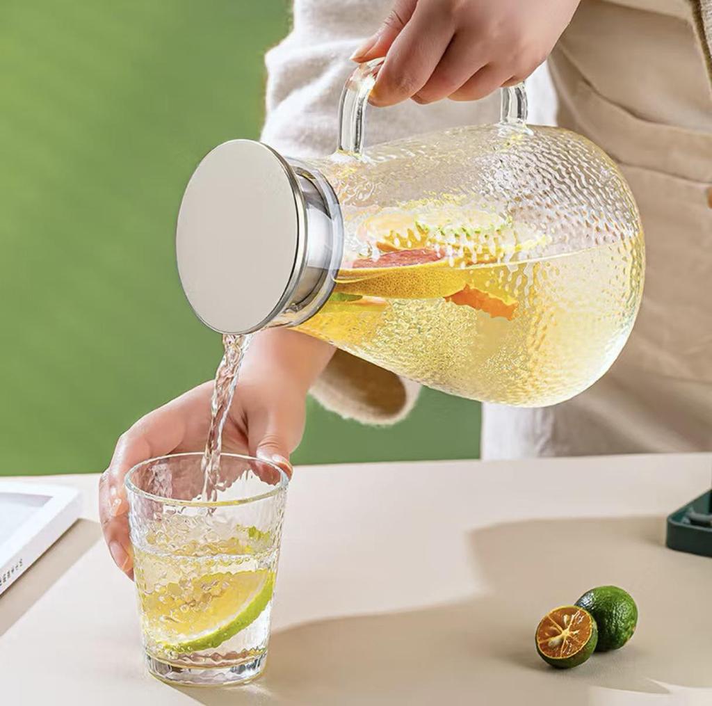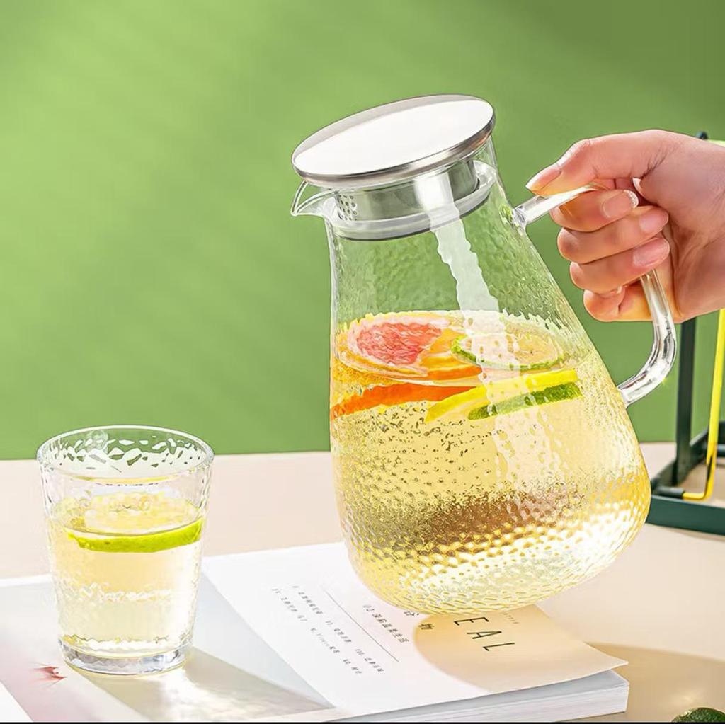 Green Apple Heat-Resistant Glass Kettle with Hammered Pattern for Tea, Juice, and Milk