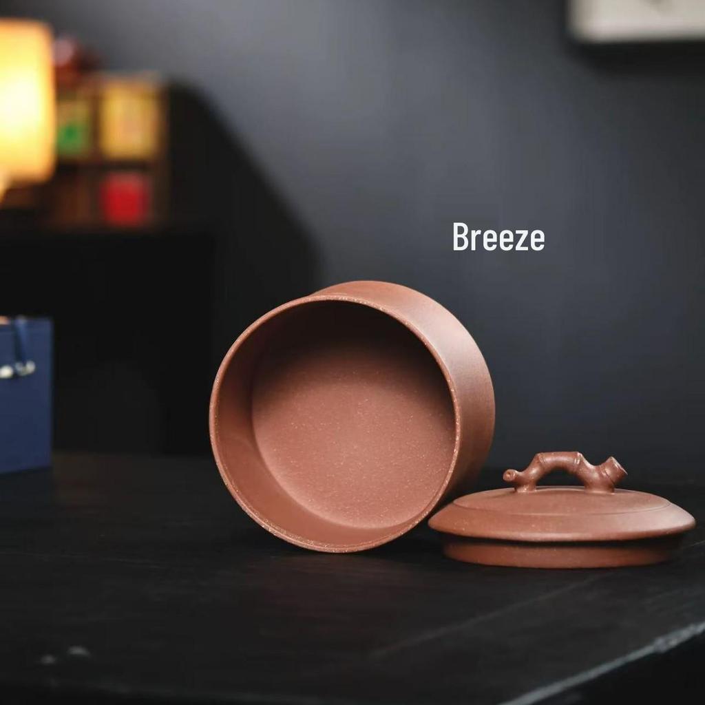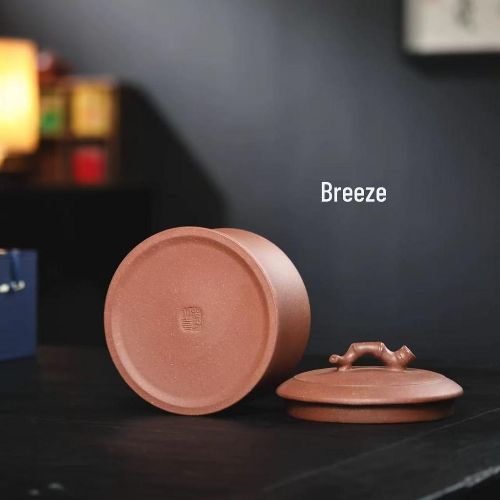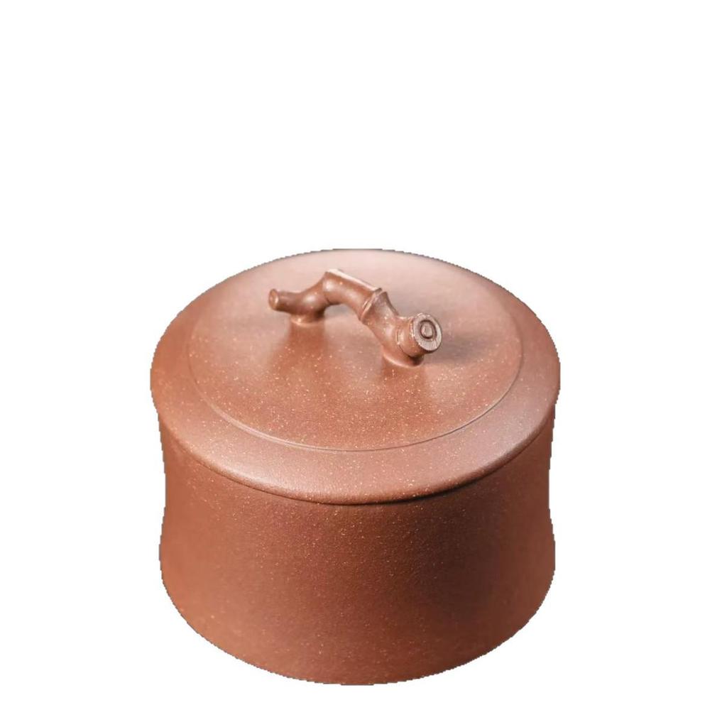 Чайница для пуэра из фиолетовой глины с половинкой бамбука, Герметичный контейнер ручной работы, Маленький размер, Вместимость пол-цзиня