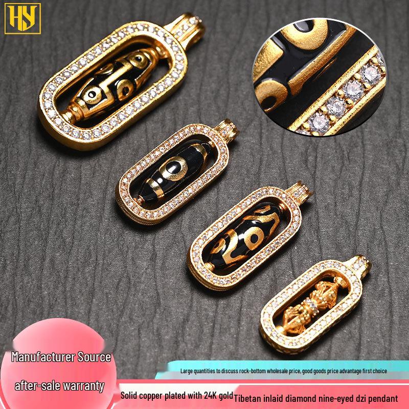 Подвеска-ожерелье с тибетским Дзи девятиглазым амулетом, покрытая 24-каратным золотом, с инкрустацией цирконами — купить товар онлайн с бесплатной доставкой по всему миру!