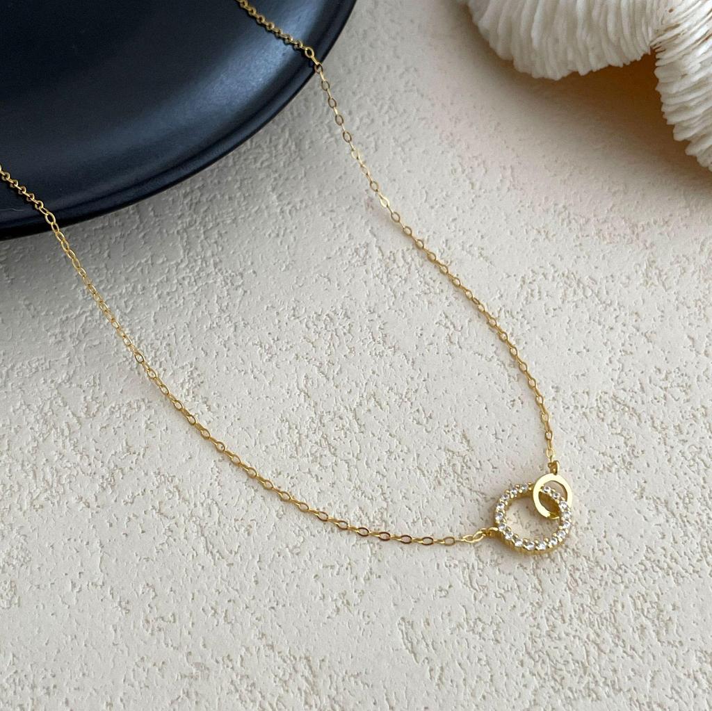 18K Gold-Plated Sterling Silver Interlocking Ring Necklace, Simple & Versatile Design, Elegant Clavicle Chain. — купить товар онлайн с бесплатной доставкой по всему миру!