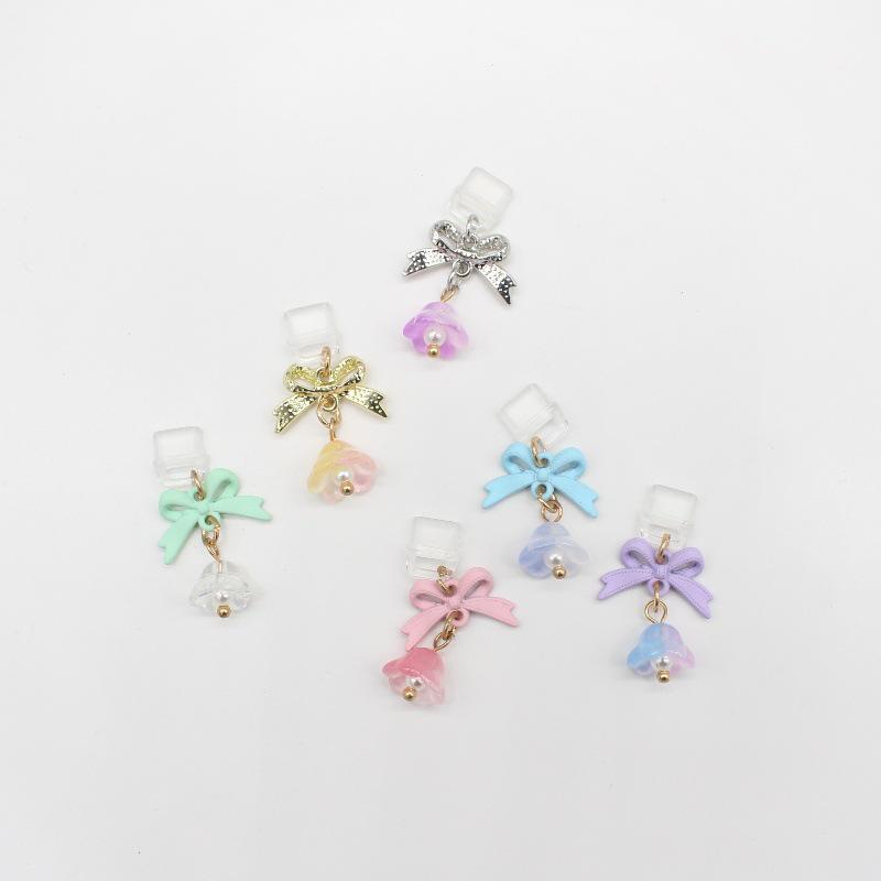 Заглушка для телефона Type-C с рисунком ландыша и бантика в мультяшном стиле
