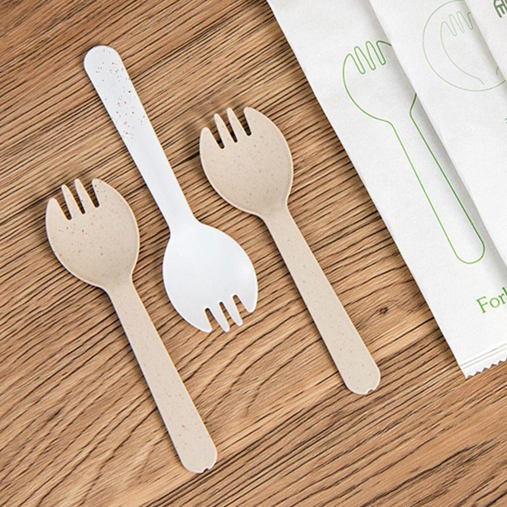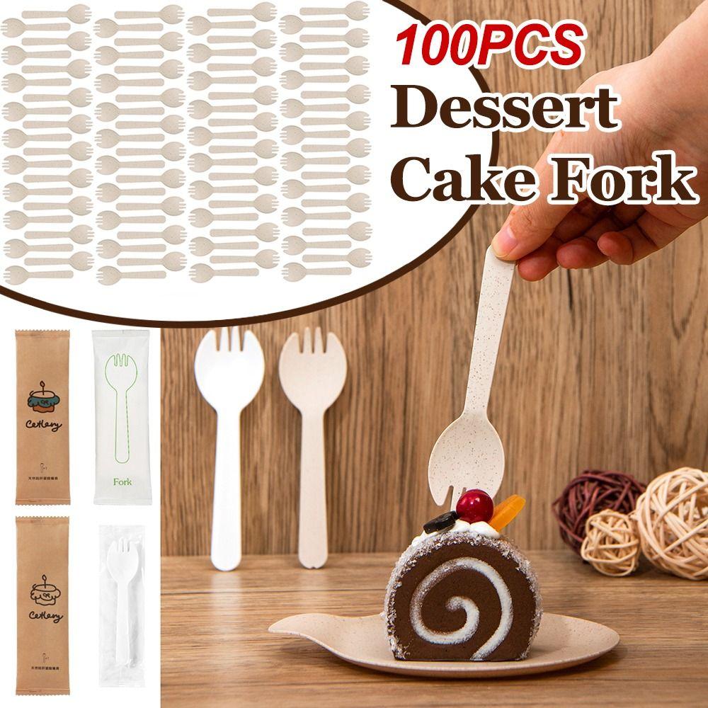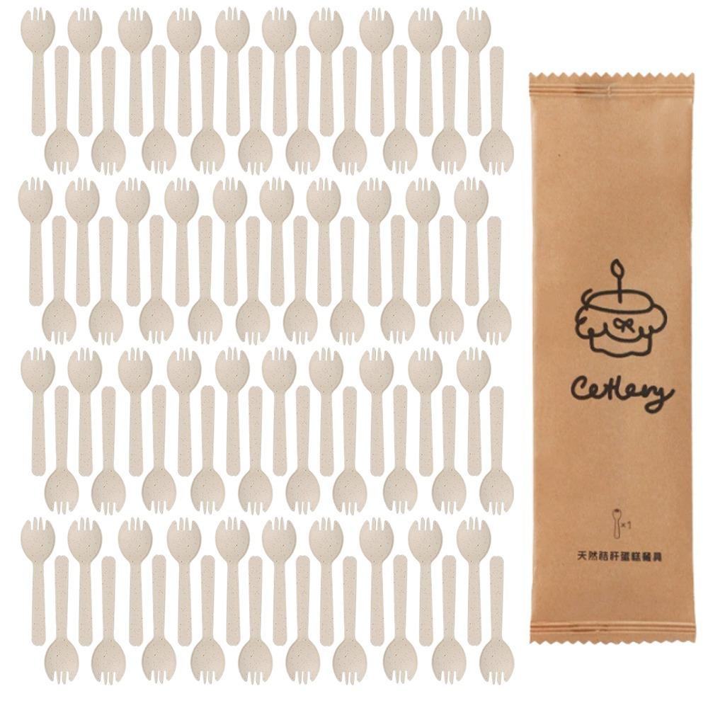 100Pcs Individually Packaged Ice Cream Spoons Wheat Straw Dessert Cake Fork Party Supplies