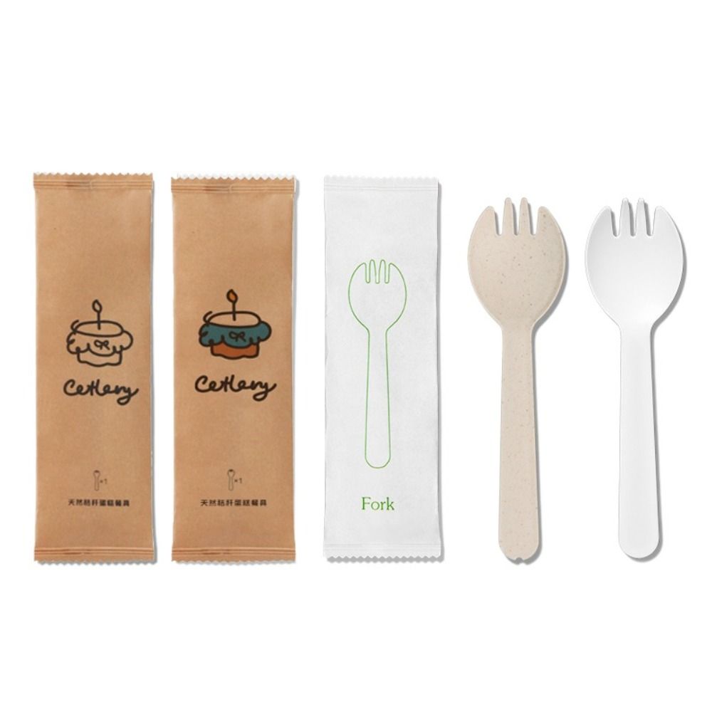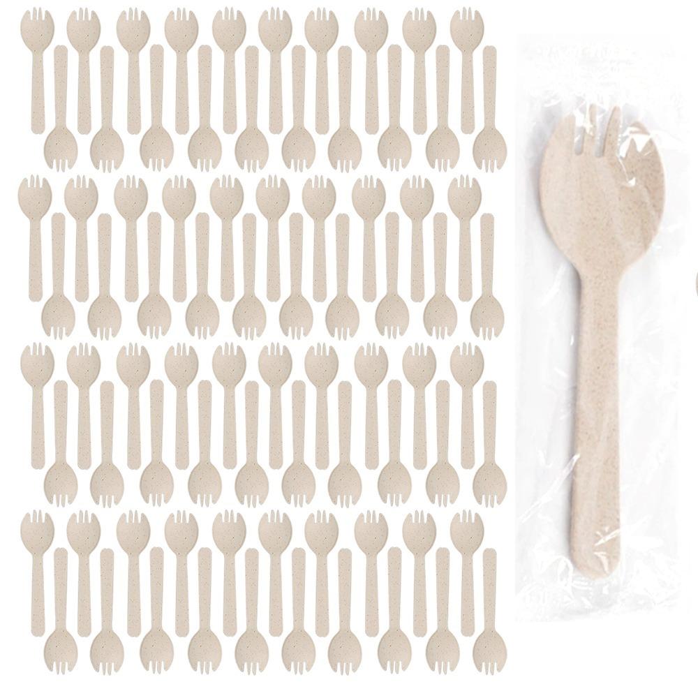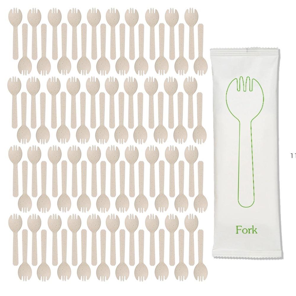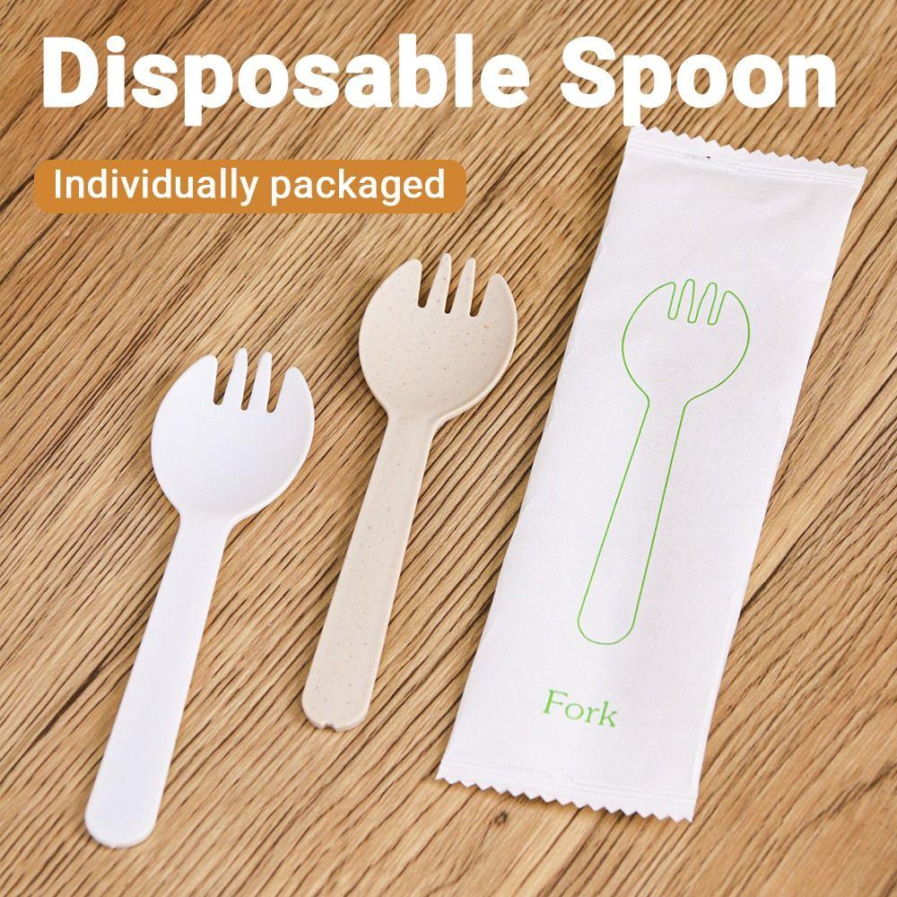 100Pcs Individually Packaged Ice Cream Spoons Wheat Straw Dessert Cake Fork Party Supplies