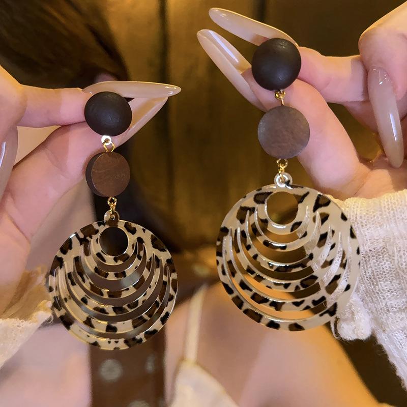 Серьги-гвоздики с цветочным леопардовым принтом из смолы - Ретро-дизайн с серебряной иглой