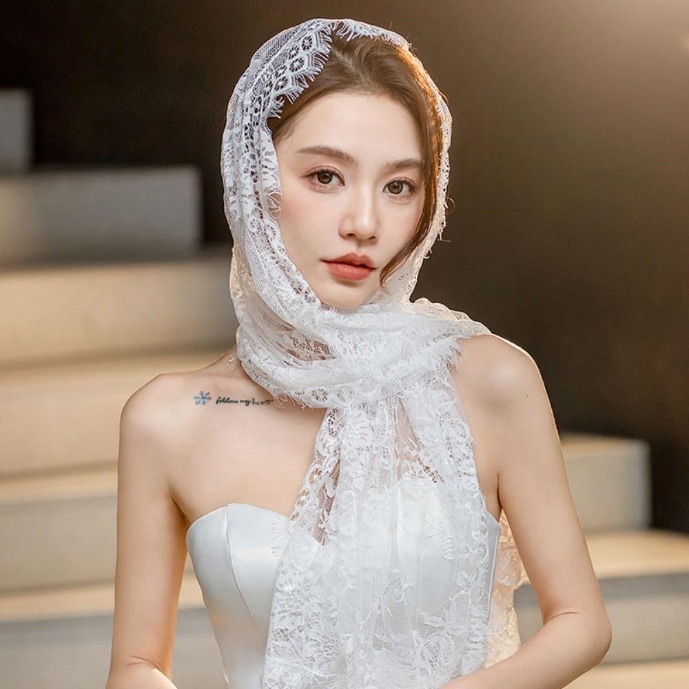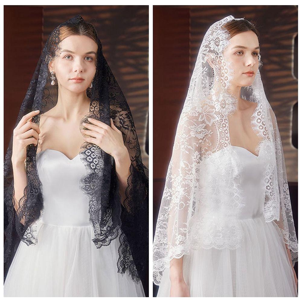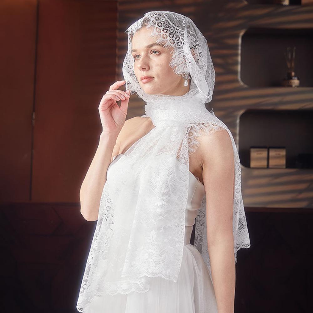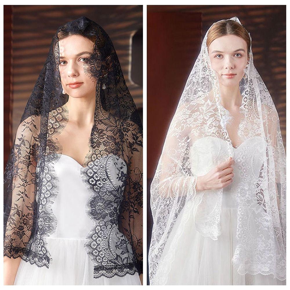 Flower Veil Prayer Shawl Lace Trim Bride Head Gauze Fashion Mantilla Scarf Woman