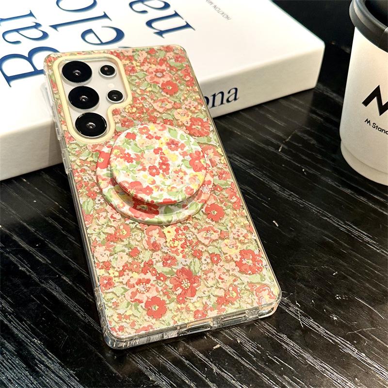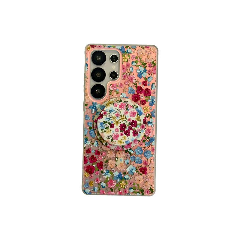 Чехол-подставка с магнитом и блестками для Samsung S25 Ultra/S23 FE - Дизайн Осенние и Зимние Цветы