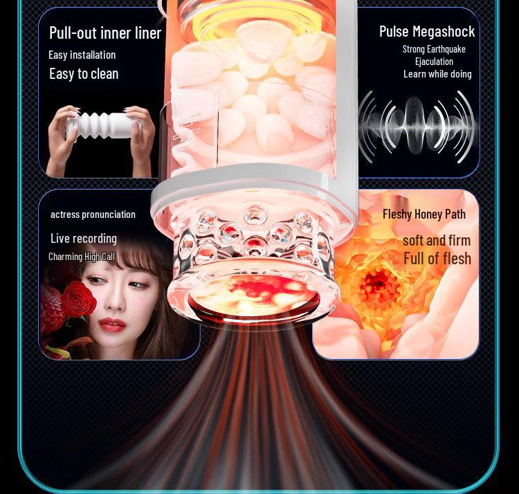 Автоматический вибрационный выдвижной мужской мастурбатор с насадкой в виде надувной куклы