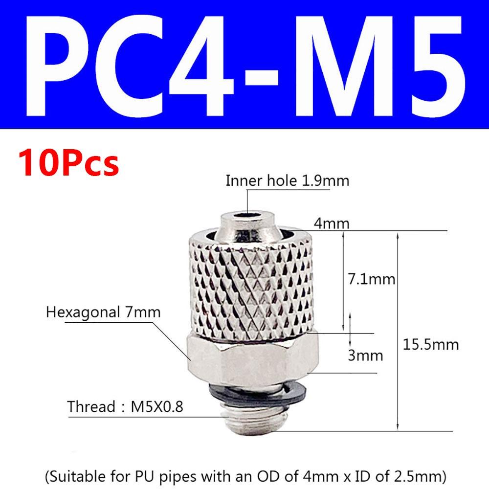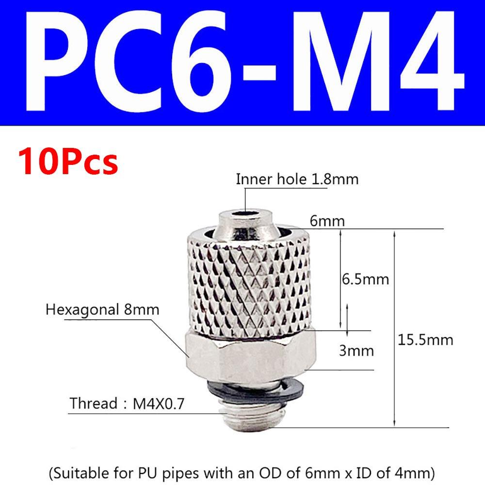 10Pcs Male Thread Air Tube Connector M3 M4 M5 M6 Pneumatic Pipe Connector Quick Fitting Fast Joint