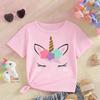 Девочкам 4-14 лет Милая футболка с принтом единорога Повседневная с коротким рукавом Удобная универсальная футболка Топы на лето 2026