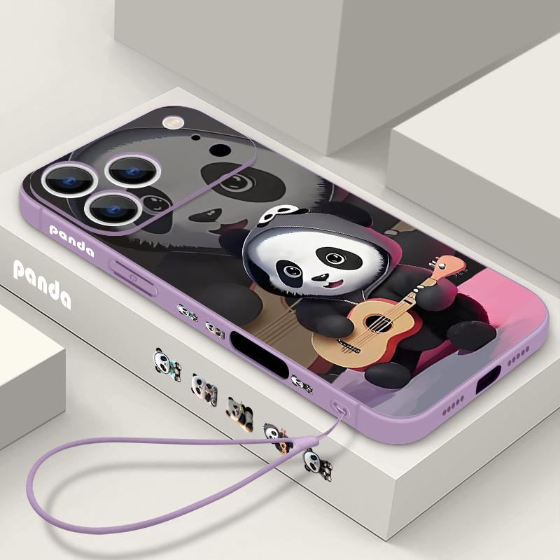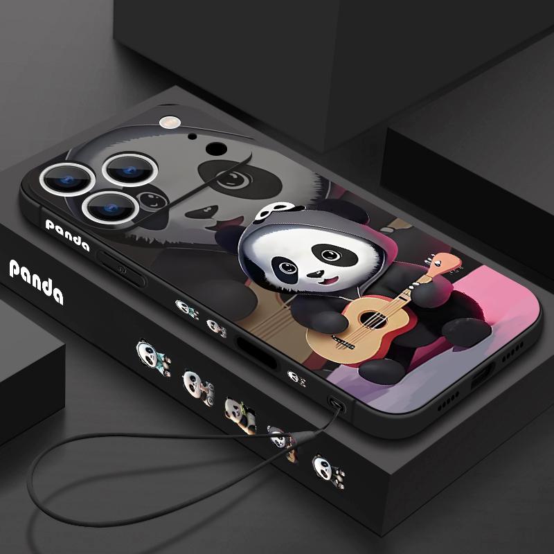 Чехол-подвеска с пандой, играющей на гитаре, для iPhone 17 Pro Max Мягкий силиконовый чехол для iPhone 16 Pro Max Funda iPhone 15 14 13 12 11 16E Air