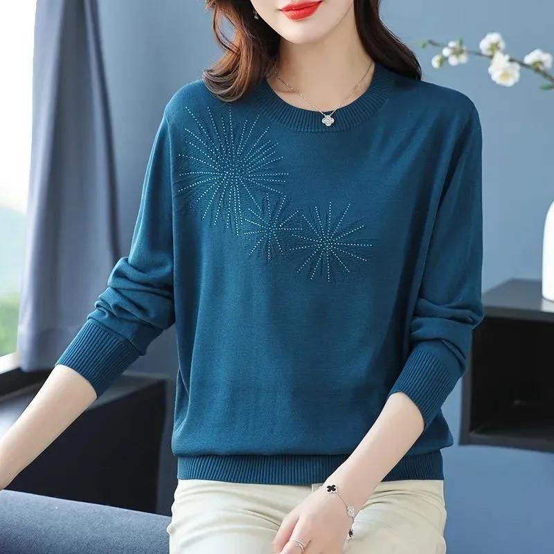 Женский свитер Осень Зима Утепленный пуловер Теплый вязаный в полоску с круглым вырезом Базовый слой Эластичный с длинным рукавом Оверсайз Джемпер Топы