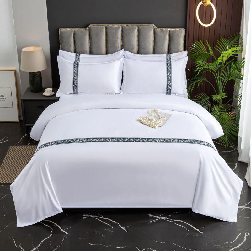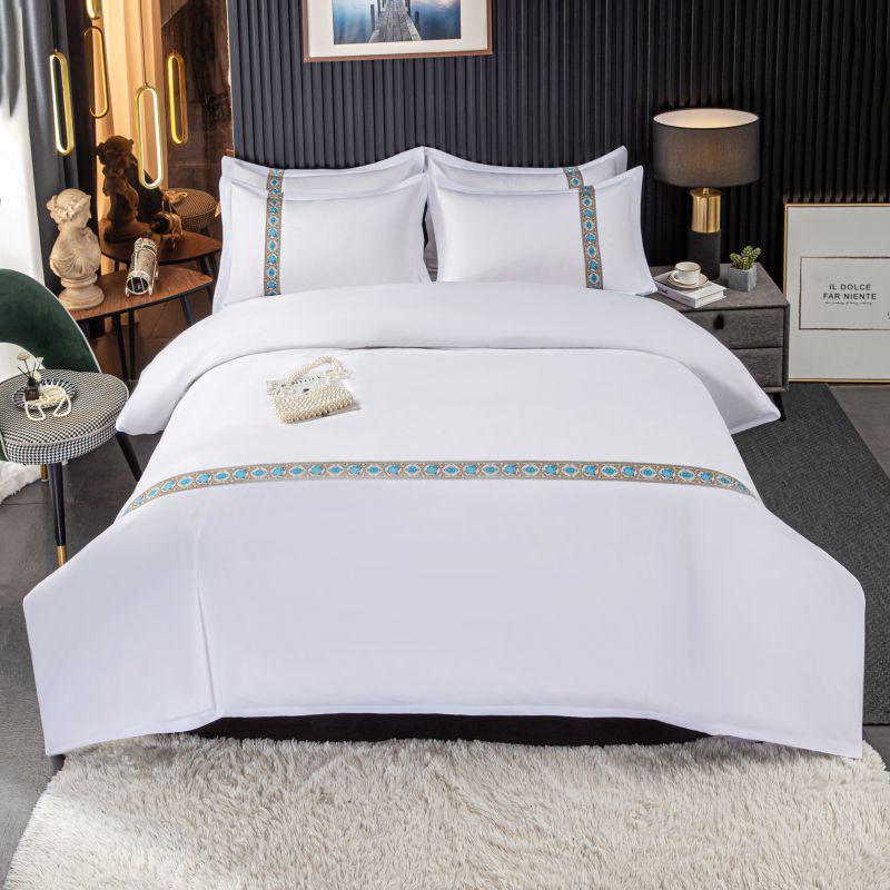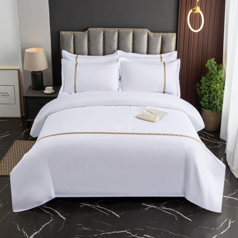 Трехсекционный гостиничный комплект постельного белья чисто-белого цвета: Плотная простыня и пододеяльник для гостевого дома