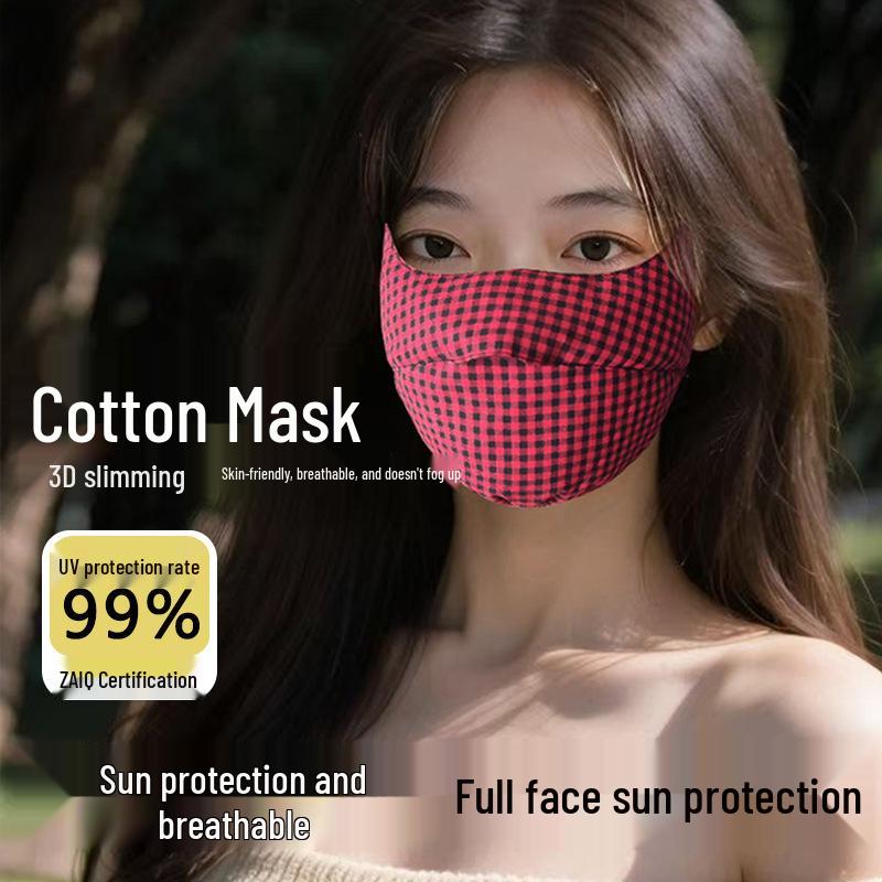 3D Клетчатая хлопковая маска от солнца с защитой глаз - Стирка и воздухопроницаемость для женщин