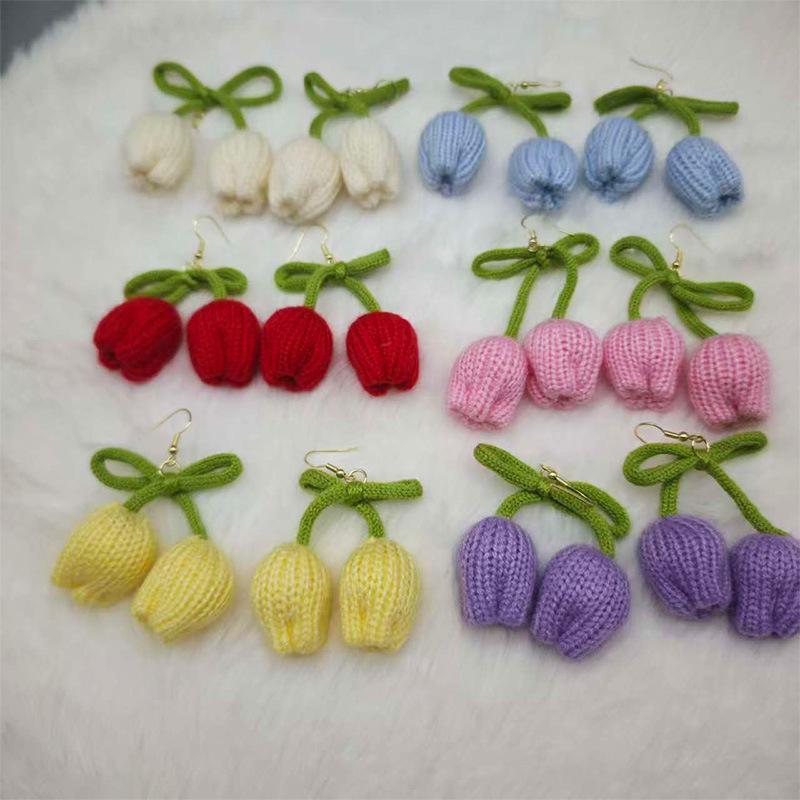 Очаровательные вязаные шерстяные серьги-тюльпаны для женщин — купить товар онлайн с бесплатной доставкой по всему миру!