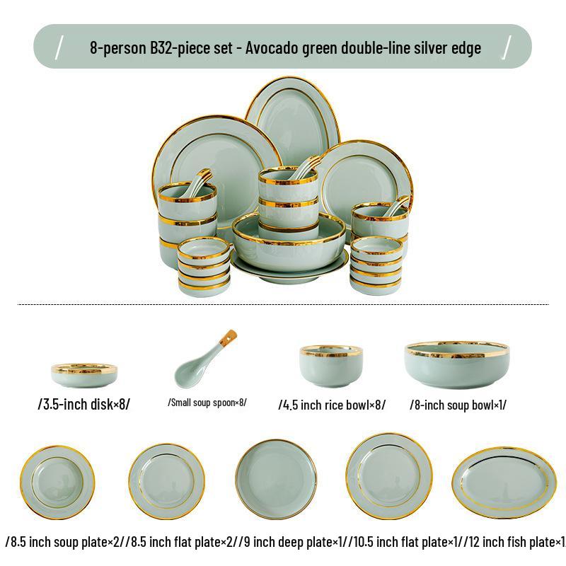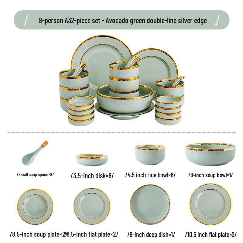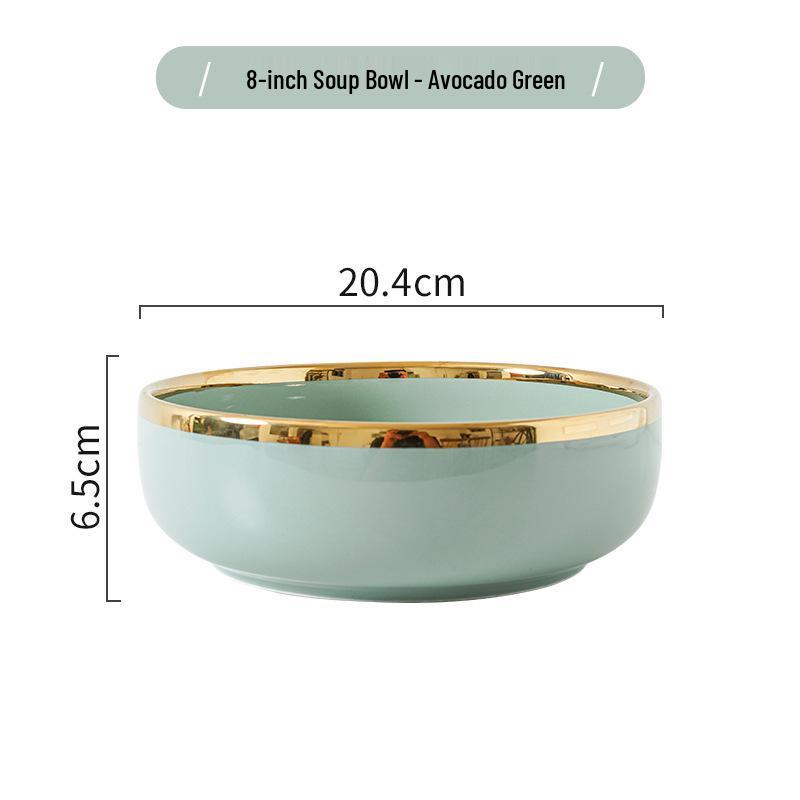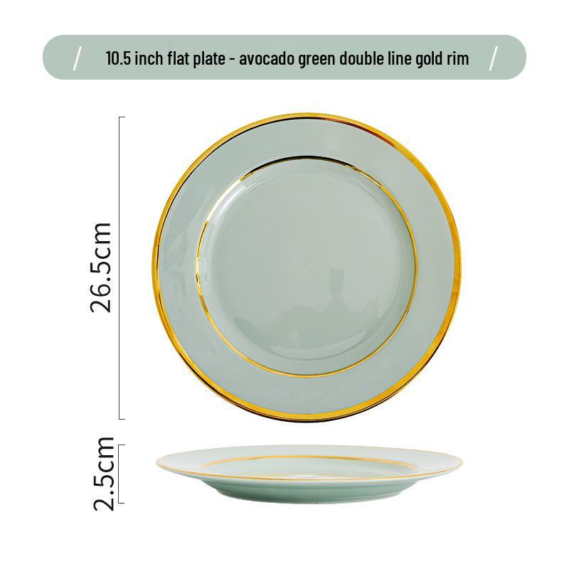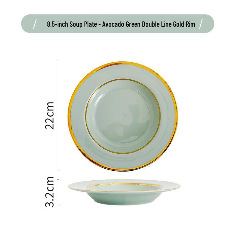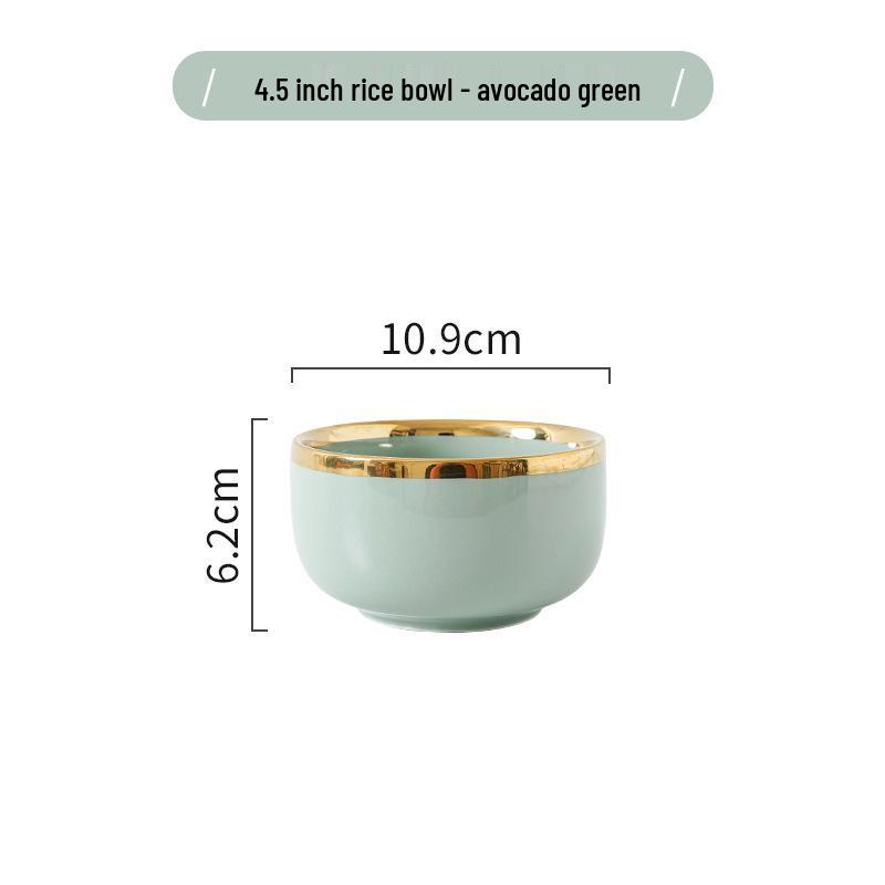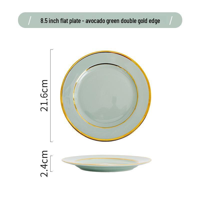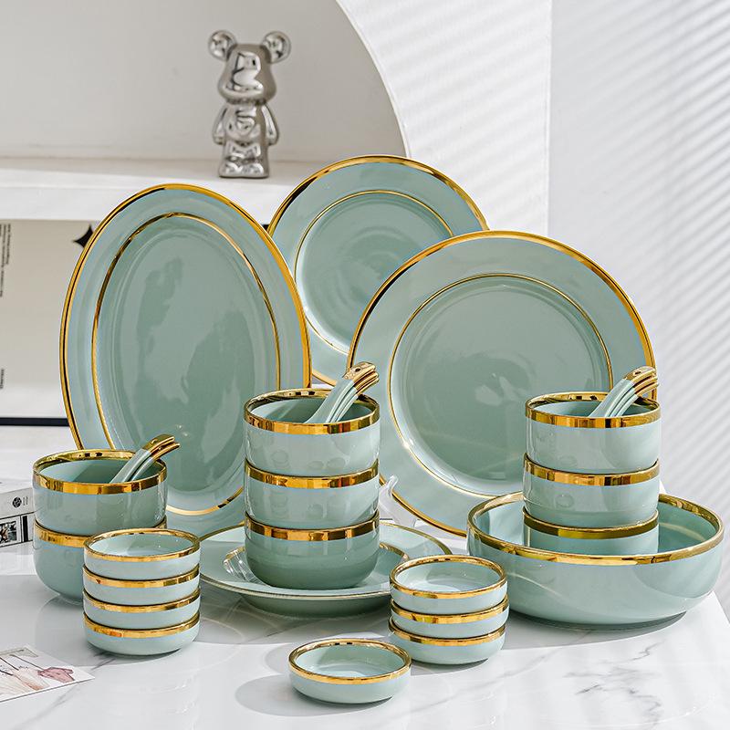 Керамический набор посуды в скандинавском стиле: Элегантные тарелки, миски и палочки для еды с золотым ободком