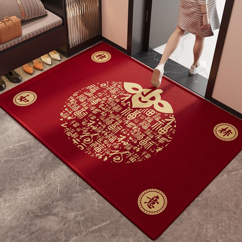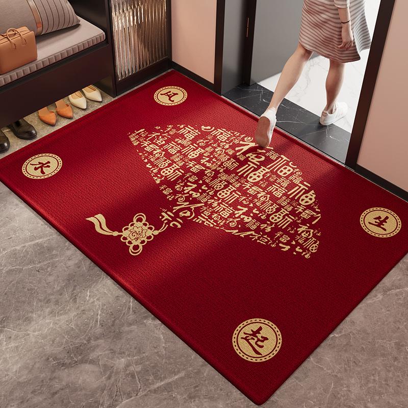 Праздничный входной коврик в китайском стиле - Нескользящий, грязеотталкивающий, скребок для грязи, кристаллический велюр.