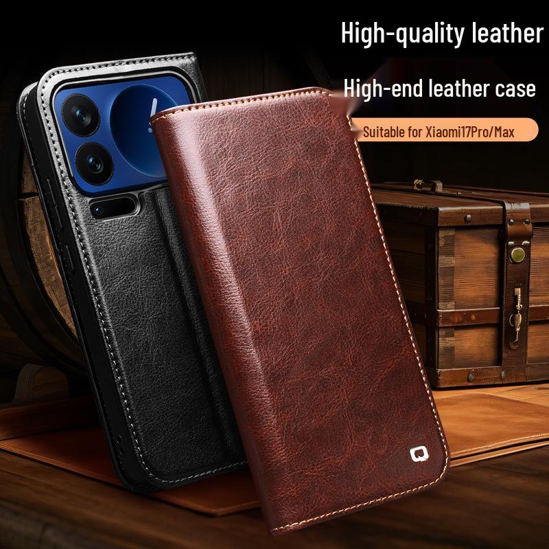 Чехол-книжка Chali из натуральной кожи для Xiaomi 17 Pro Max со подставкой и защитой объектива