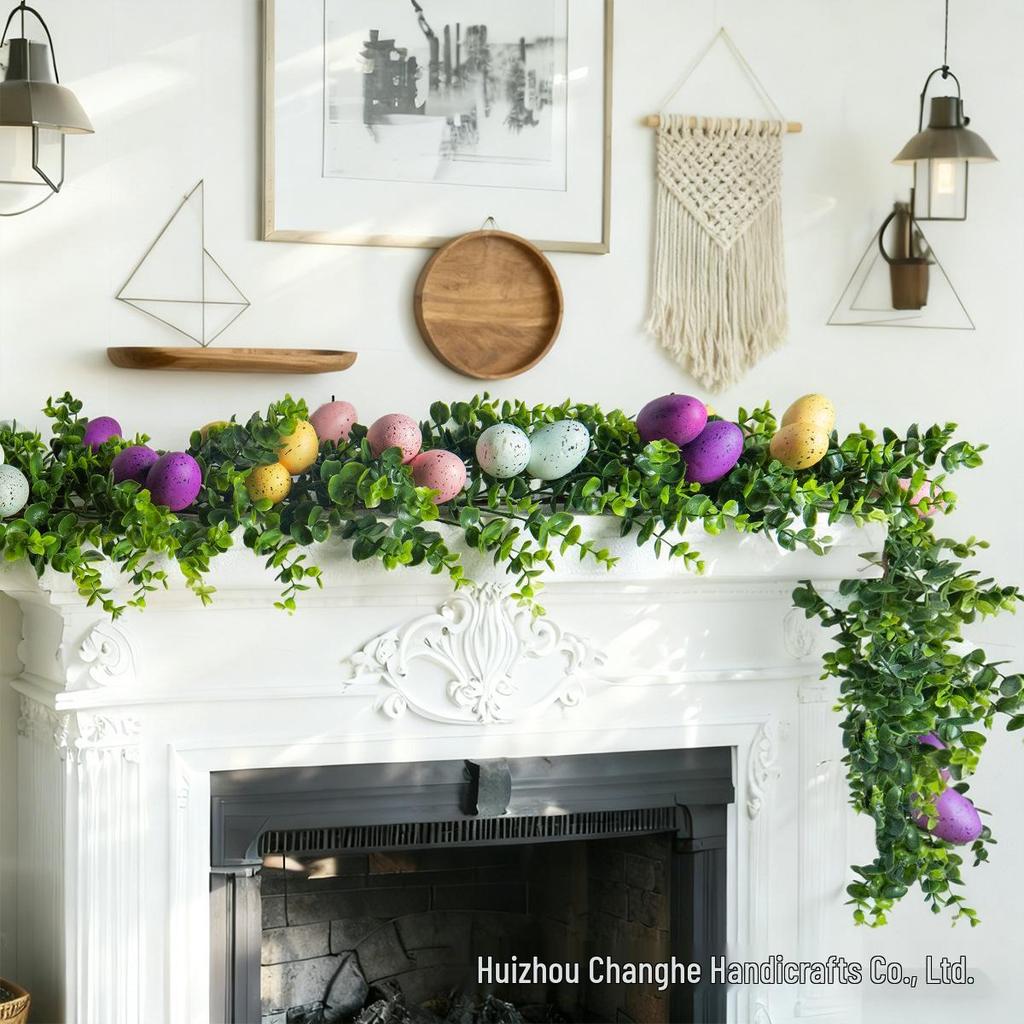Модель1,7 м 3-ветви Эвкалиптовые листья Цветные Яичные лианы