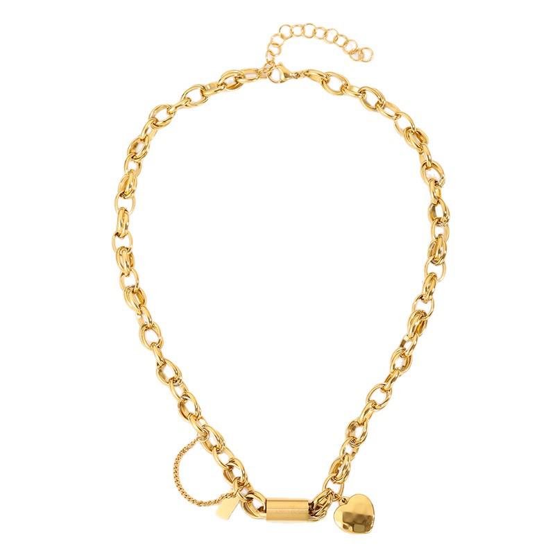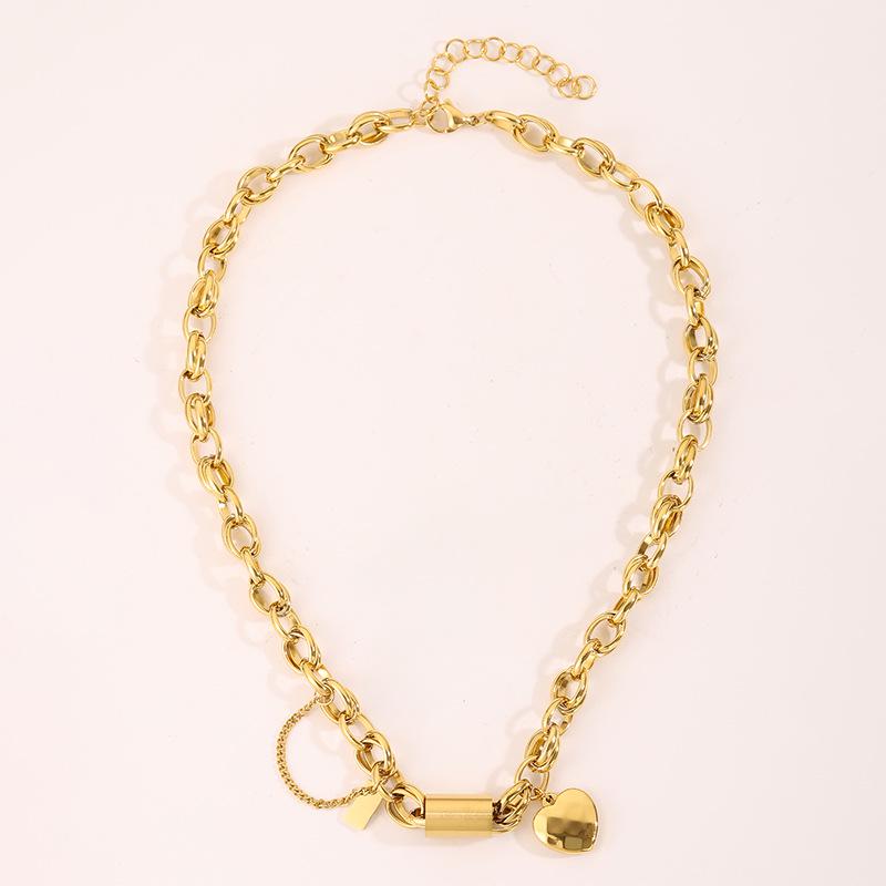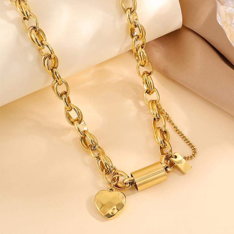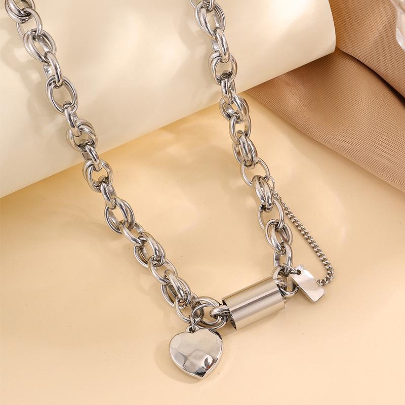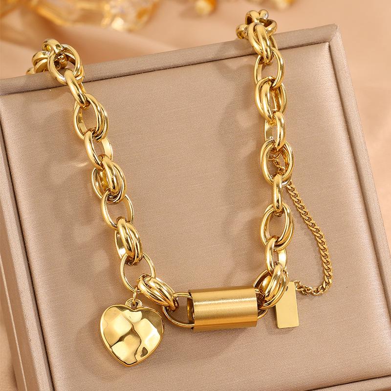 Heart Chain Necklace & Bracelet Set in Non-Fading Titanium Steel – European & American Fashion Jewelry for Women