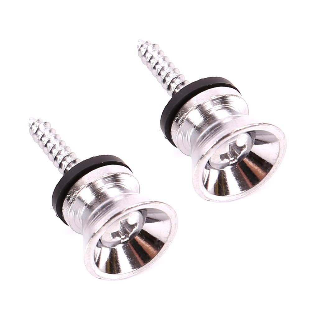 Silver Chrome Strap Pins for Electric Guitars, Acoustic Guitars, Basses, and Other Guitars with Basic Strap Pins (Set of 2)