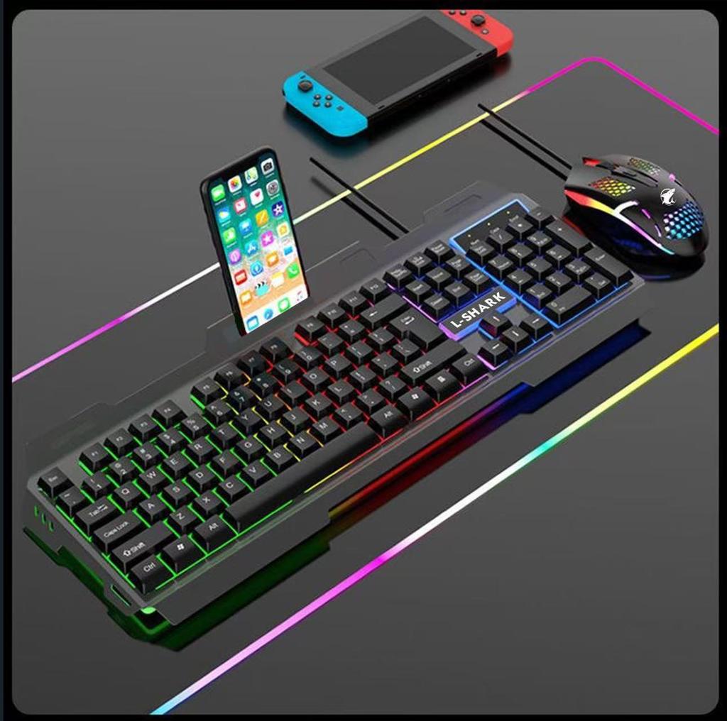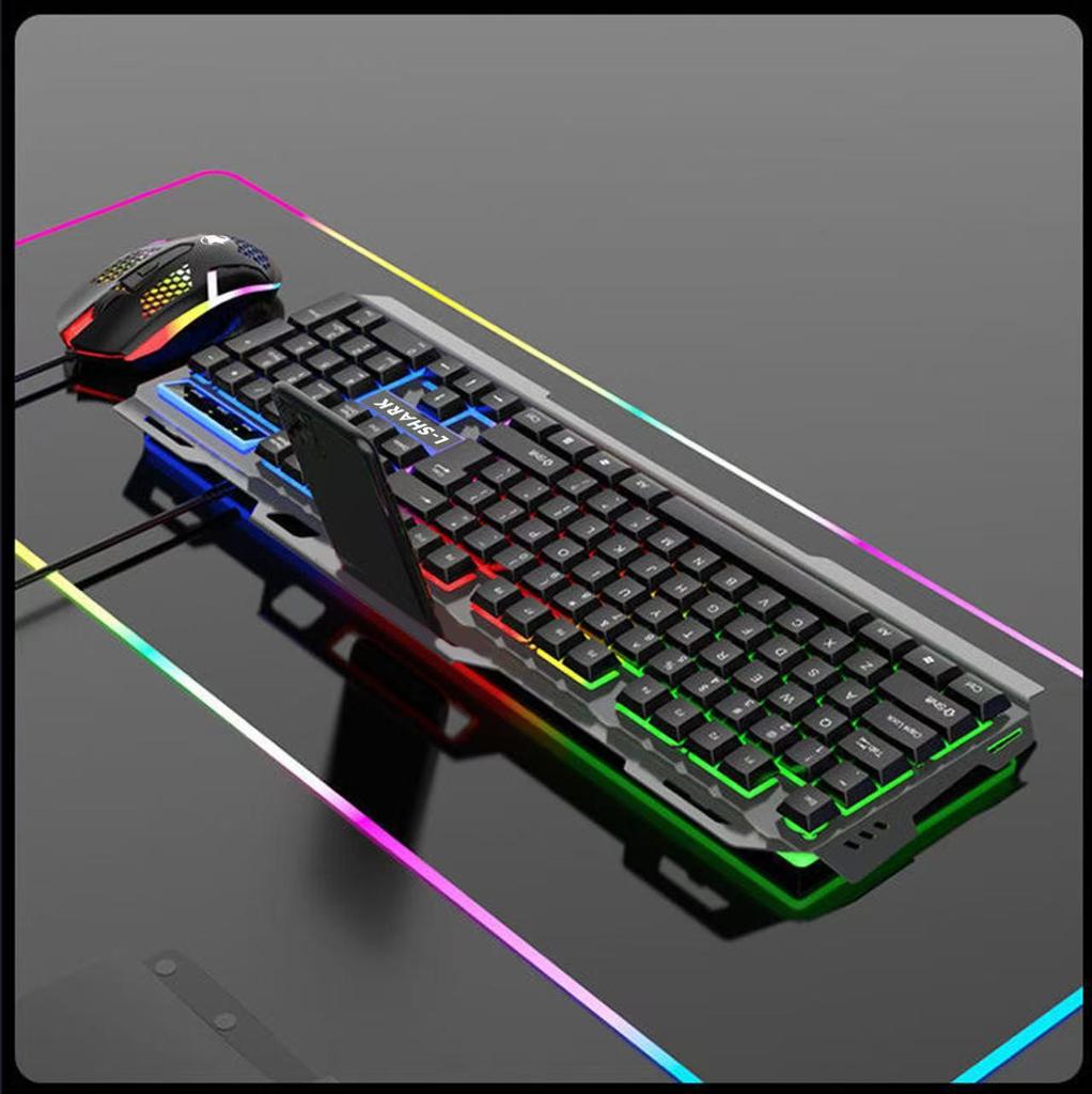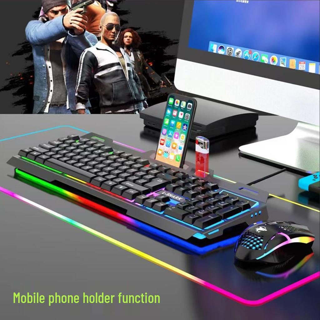 Wired Backlit Gaming Keyboard & Mouse Set with Metal Plate - Mechanical Feel, Competitive Gaming