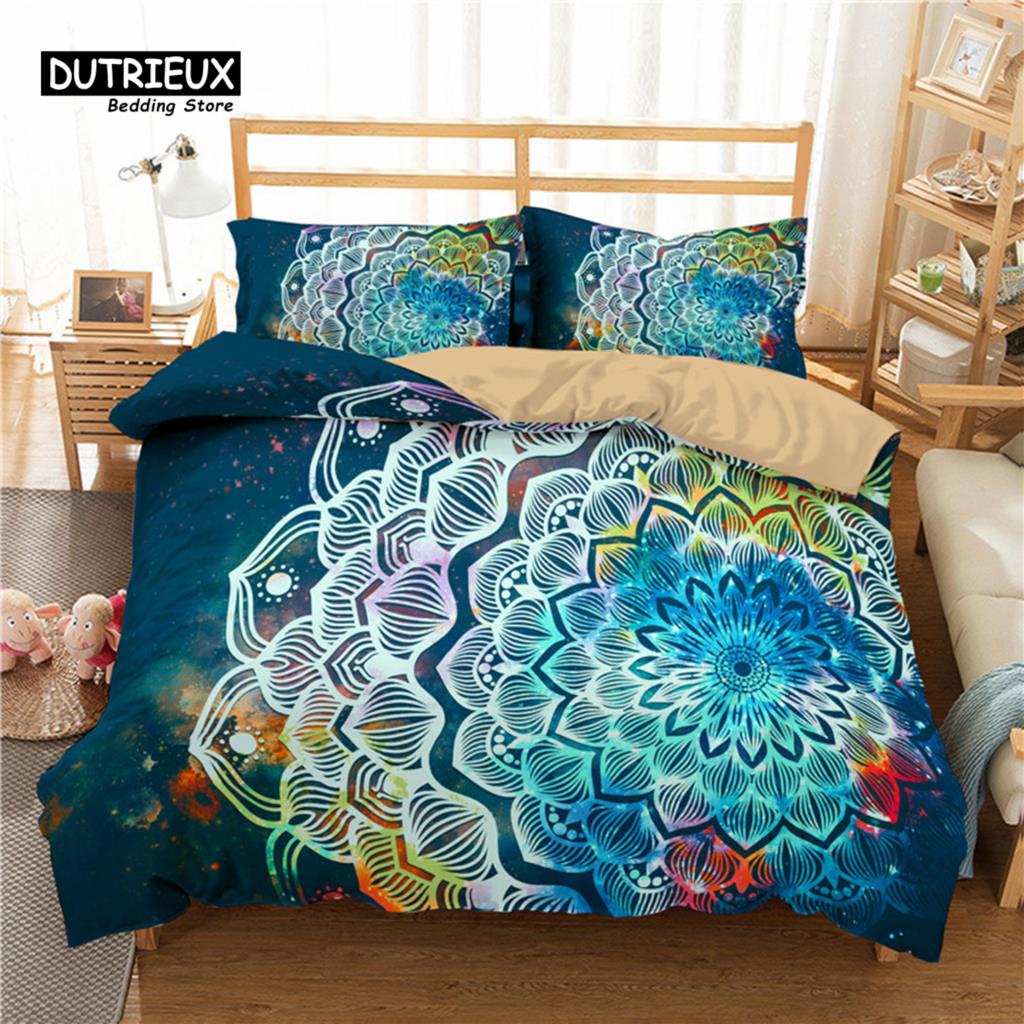 Bohemian Mandala Duvet Cover Set King Queen Size 2/3Pcs Hippie Bedding Set Polyester Indian Ethnic Floral Quilt Cover Pillowcase