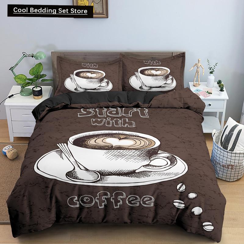 Coffee Cake King Queen Duvet Cover Lovely Afternoon Tea Drawing Bedding Set For Adult Western Drink 2/3Pcs Polyester Quilt Cover