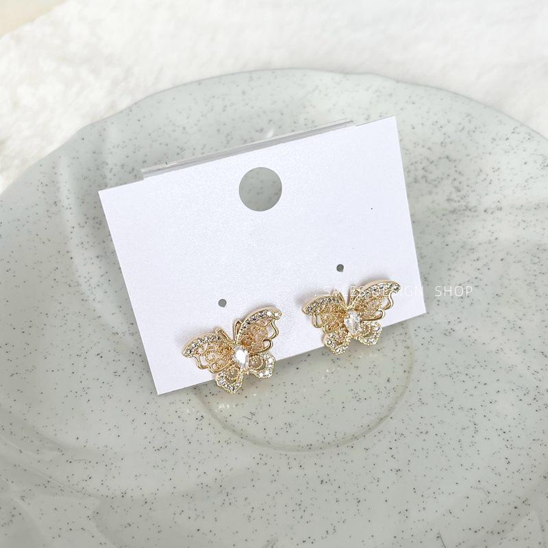 Осенне-зимние серьги-гвоздики 'Бабочка' с цирконами и эмалевыми цветами - Элегантные, Универсальные и Роскошные для Женщин