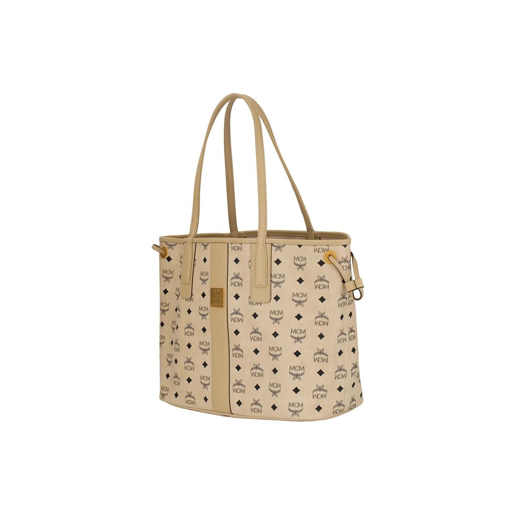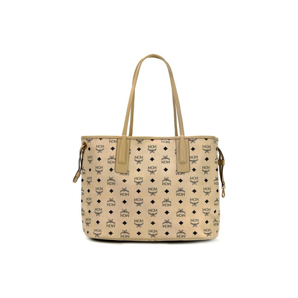MCM Himmel Metal Logo Zipper Closure Coated Canvas with Leather Trim Crossbody Tote Bag Women's Style Brown