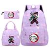 3 шт./комплект Аниме Клинок, рассекающий демонов, Рюкзак, Сумка, Пенал для Подростка Студента, Школьная сумка, Женская, Большая вместимость, Водонепроницаемая, Дорожная сумка, Mochila