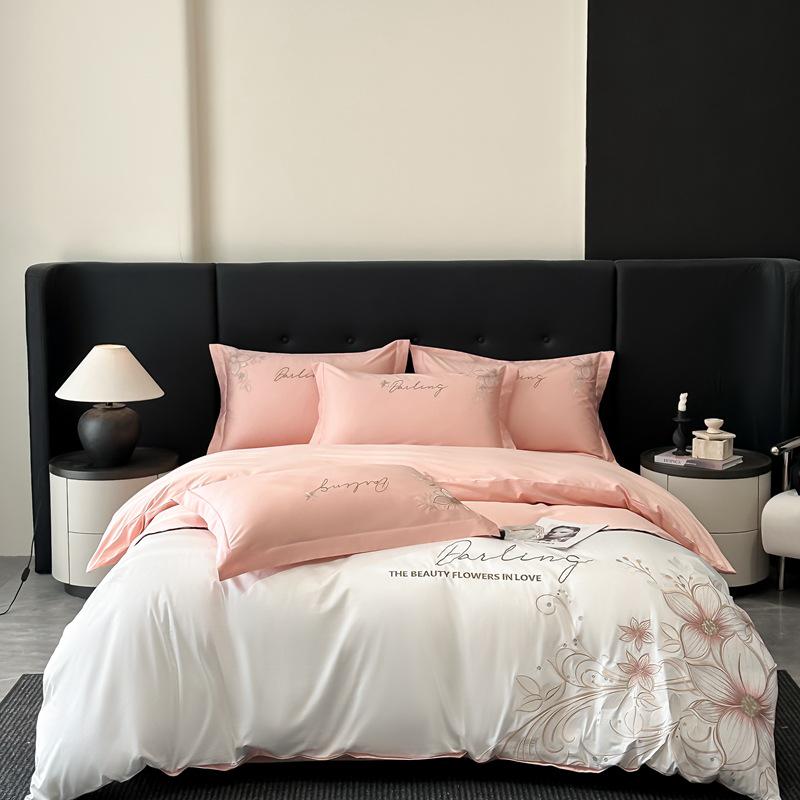 Luxury Embroidered All-Cotton Four-Piece Duvet Cover Set for All Seasons