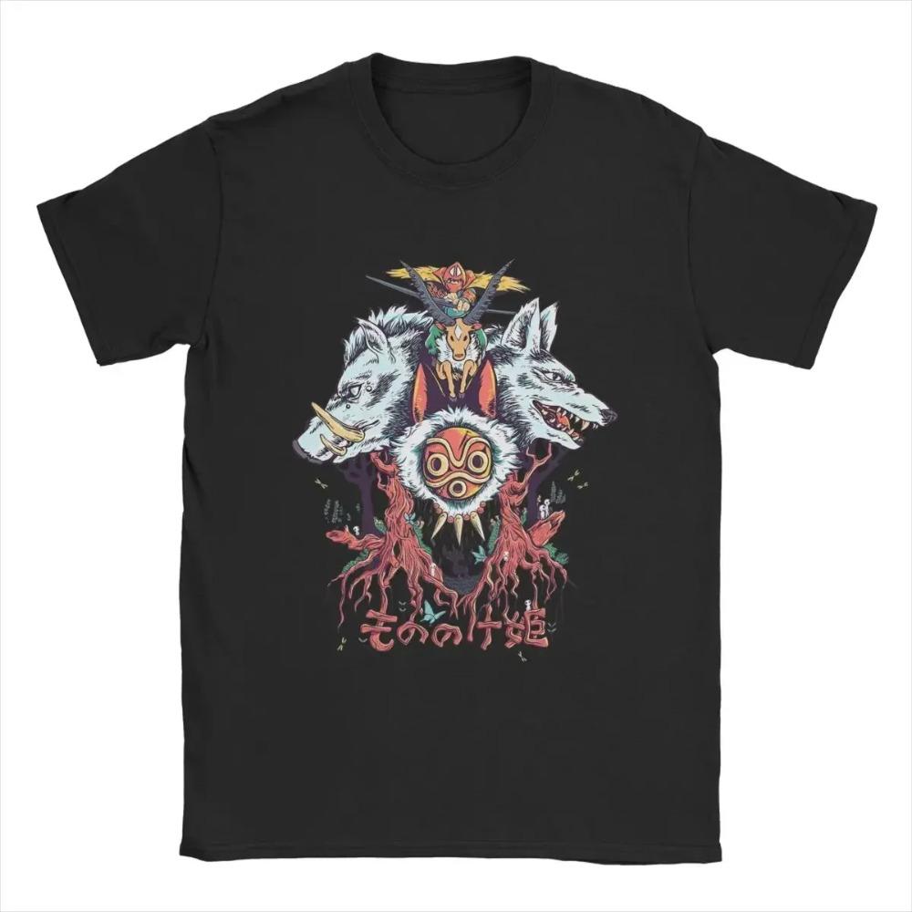 Футболка мужская Принцесса Мононоке Япония Аниме Мультфильм Потрясающие футболки Короткий рукав Круглый вырез Футболка 100% хлопок Летний мерч — купить товар онлайн с бесплатной доставкой по всему миру!