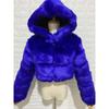 Женская ярко-синяя укороченная толстовка-куртка из искусственного меха, роскошное теплое зимнее пальто