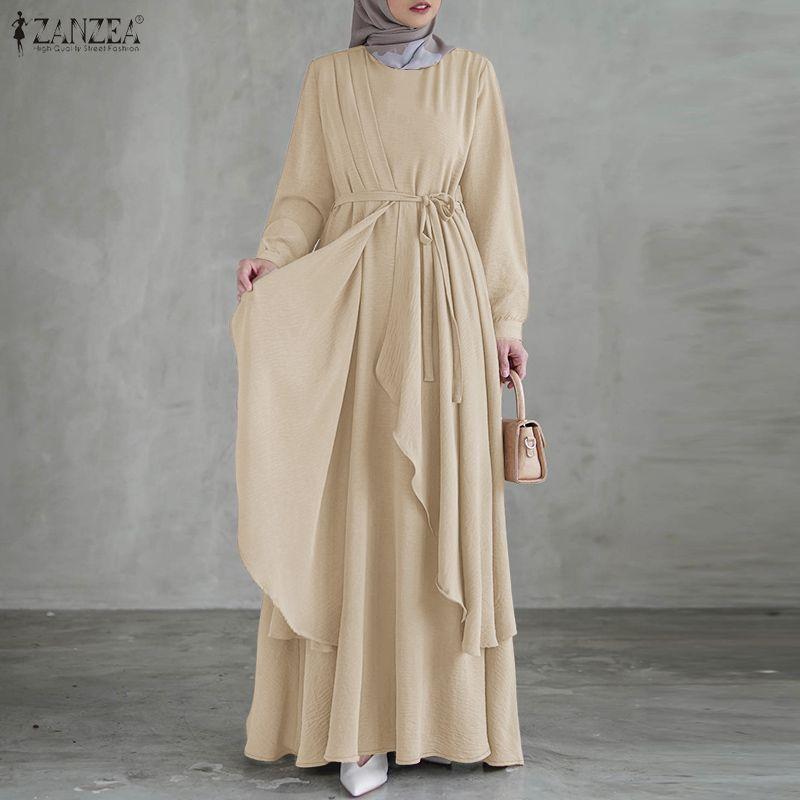 ZANZEA Женское повседневное платье с круглым вырезом, длинным рукавом, свободного кроя, мусульманское — купить товар онлайн с бесплатной доставкой по всему миру!