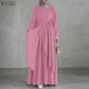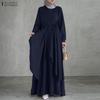 ZANZEA Женское повседневное платье с круглым вырезом, длинным рукавом и свободного кроя, мусульманское