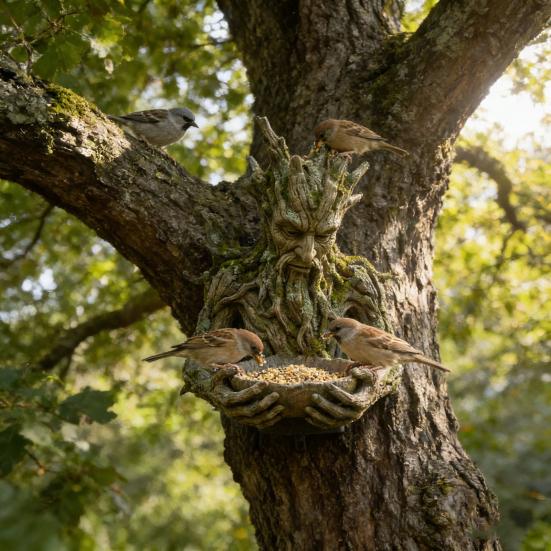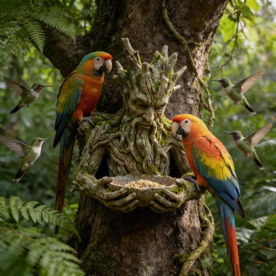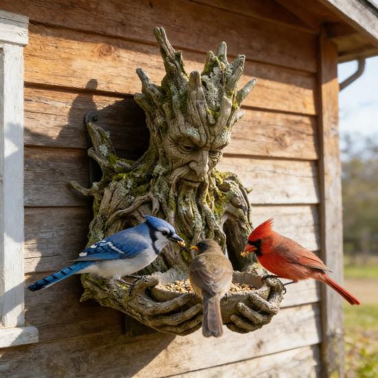 Многофункциональная фэнтезийная скульптура «Человек-дерево»: Помимо кормления птиц, эта уникальная скульптура служит нежным стражем вашего сада. Он надежно удерживает семена для прилетающих птиц, добавляя при этом воображаемое тепло и характер вашему уличному декору.. Художественное сочетание элементов, вдохновленных природой, делает его как функциональной кормушкой, так и завораживающим произведением садового искусства.