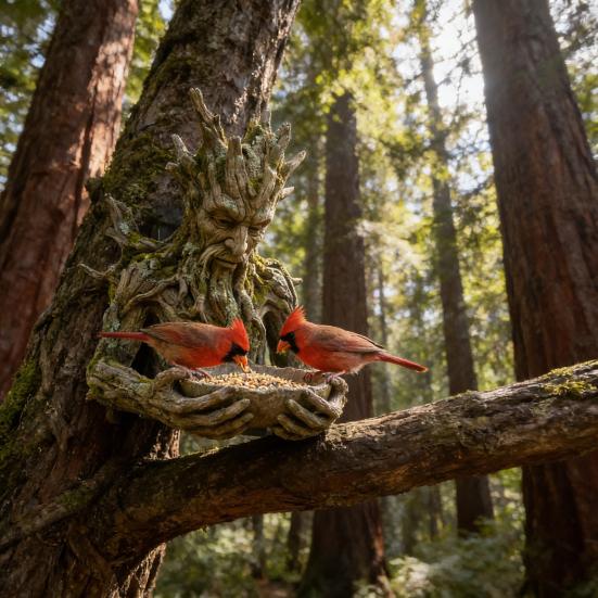 Завораживающая природная эстетика, вдохновленная мифом: Эта кормушка для птиц воплощает мифическую легенду о «человеке-дереве», превращая ваш сад в безмятежное убежище.. Его сложный дизайн гармонично сочетается с окружающими деревьями и цветами, создавая привлекательное украшение, которое привлекает диких животных, одновременно улучшая природную красоту вашего открытого пространства ноткой фантазии и очарования.