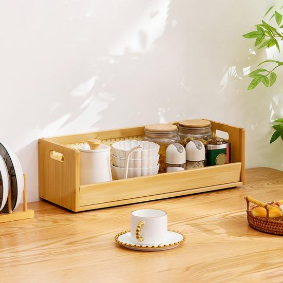 Удобная ручка дизайн: Оснащенная двумя усиленными бамбуковыми ручками, эта коробка для хранения обеспечивает легкую переносимость.. Легко поднимайте, переносите и перемещайте органайзер куда угодно без хлопот, что позволяет поддерживать порядок с минимальными усилиями и максимальным удобством.