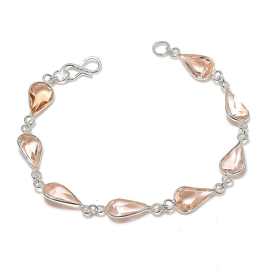 Натуральный камень морганит Ручная работа Серебро 925 пробы Браслет 7-8" ASB-2948