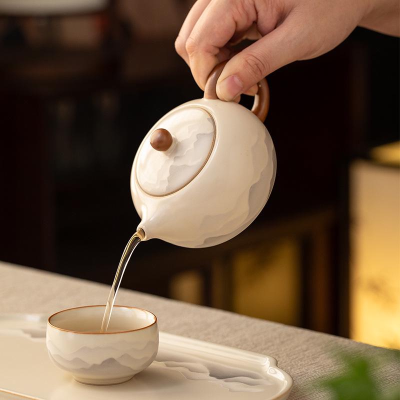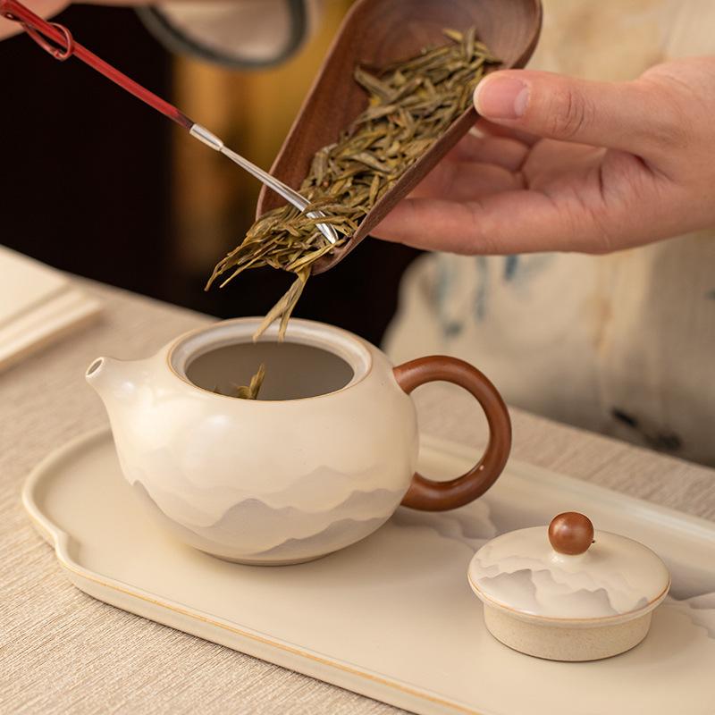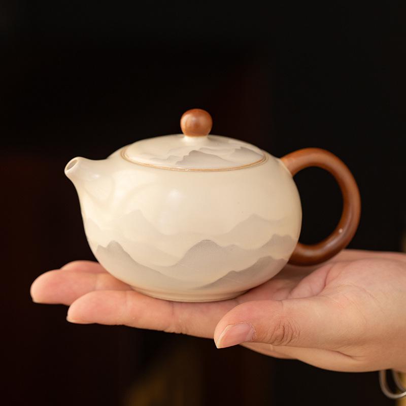 Керамический чайник Ру-ware Xishi в стиле чернильной живописи, бежевый - Маленький заварочный чайник в стиле Кунг-фу для чая
