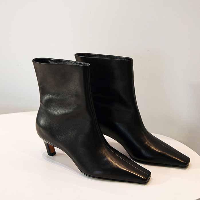 New versatile cat heel thin boots niche French small ankle boots square head high heel short boots