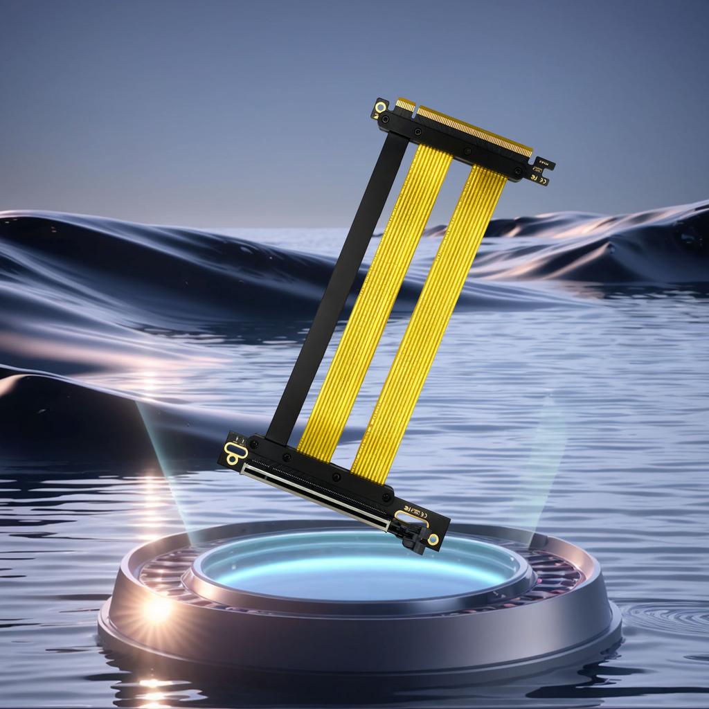 Achieve superior speeds up to 32GT/s (64GB/s bandwidth) with our PCI-E16X riser cable, supporting demanding graphics cards for high-end gaming, AI computing, and 8K video without lag.