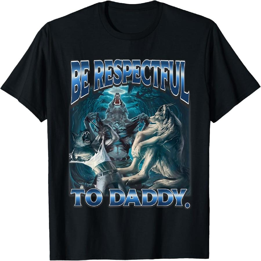 Будь уважителен к папочке Смешной мем про оборотня Кринжовая футболка альфа-волка
