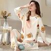 Комплект из 2 предметов, пижама с длинными рукавами, женская шелковая пижама, осенне-зимняя версия, большой размер, женская домашняя одежда с рисунком медведя из мультфильма